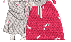 Fichier broderie machine représentant un couple japonais se tenant les mains. Il est au format pes et sa taille est 100x100mm. Nombre de points 16 030