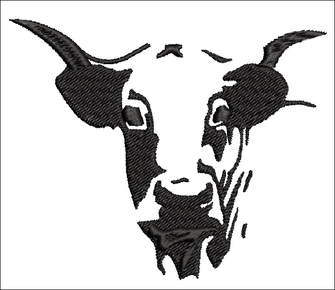 Ce motif de broderie machine représentant une tête de bovin (vache Salers), a été conçu pour offrir un rendu élégant, précis et professionnel.