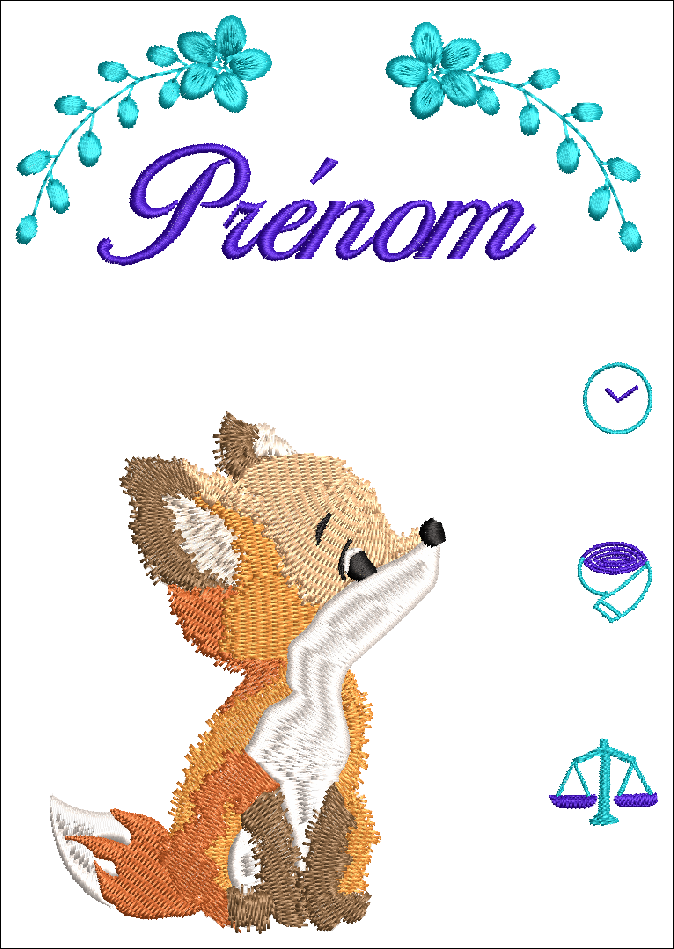 Ce motif de broderie machine représente un tableau de naissance sur le thème animaux de la forêt, pour la naissance d'un bébé fille ou un bébé garçon. Il a été conçu pour offrir un rendu élégant, précis et professionnel.