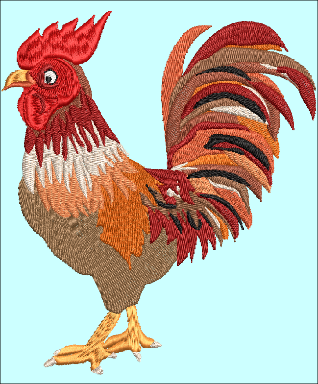 Motif de broderie machine représentant un coq. Fichier numérique haute qualité en formats: EXP, JEF, JEF+, PES, VP3 . Création élégante et professionnelle – La Montoirine.