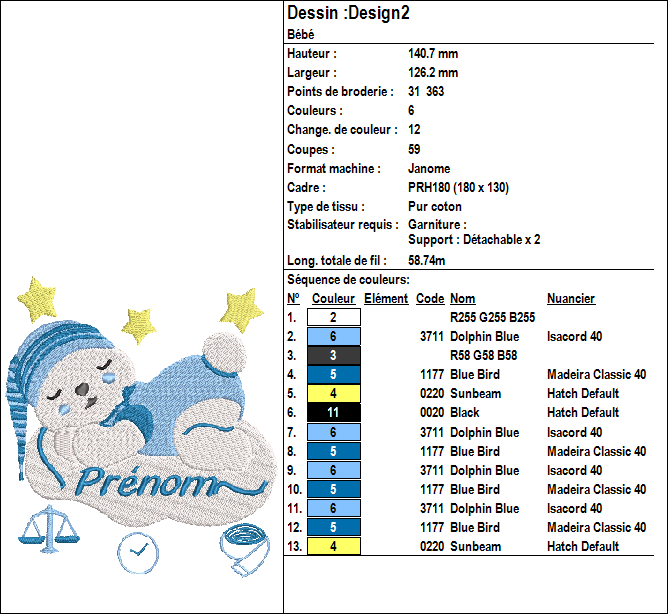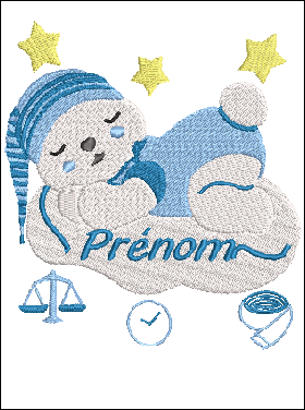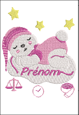 Ce motif de broderie machine représente un tableau de naissance ourson sur son nuage, pour la naissance d'un bébé fille ou un bébé garçon. Il a été conçu pour offrir un rendu élégant, précis et professionnel.