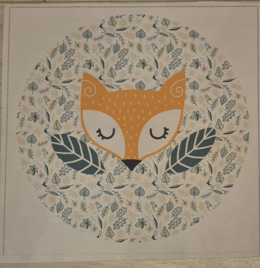 Très beau panneau de coton imperméable imprimé d'une tête de renard parmi du feuillage Format pratique 45x45 cm, prêt à découper et à coudre. Polyvalent : coussin, sac, déco murale...