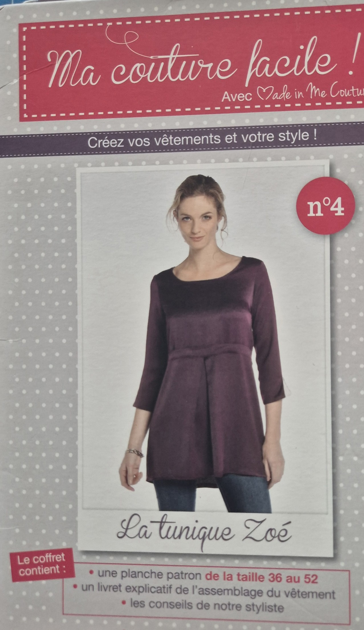 Etui patron ma couture facile, de la taille 36 au 52. Cet étui contient un patron et un livret qui vous guide pas à pas pour le montage des des pièces.