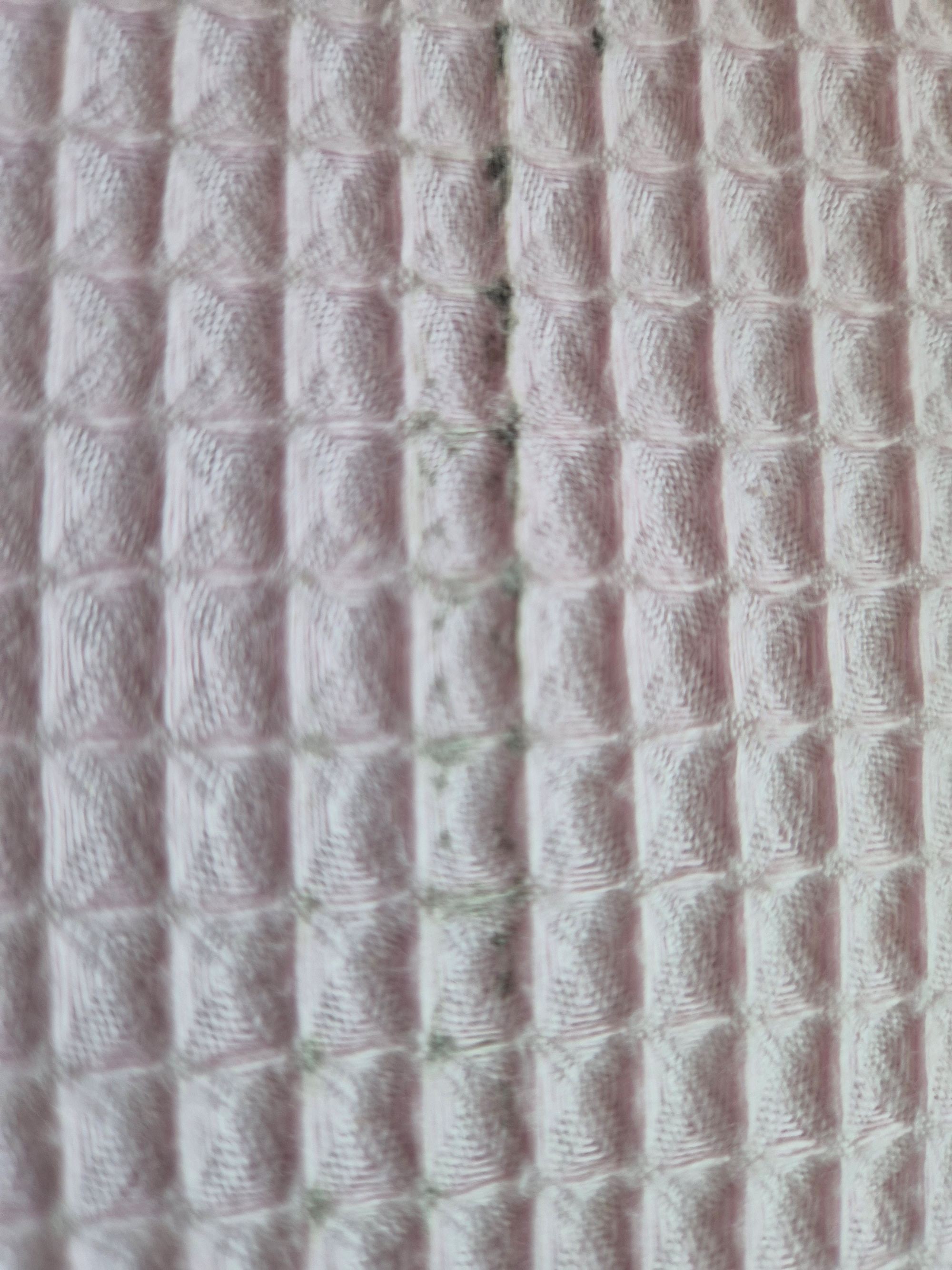 Nid d'abeille 100% coton, légèrement taché (voir photos). Laize: 150 cm, poids: 230g/m². Coloris rose clair. Caractéristique : Certifié Oeko-tex. 5 jours