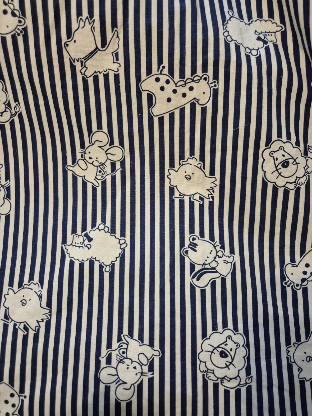 Lot de trois coupons de tissu 100% coton. Imprimé enfantin bleu marine sur fond blanc. Composition : 100% Coton. Coloris imprimé bleu marine sur fond blanc